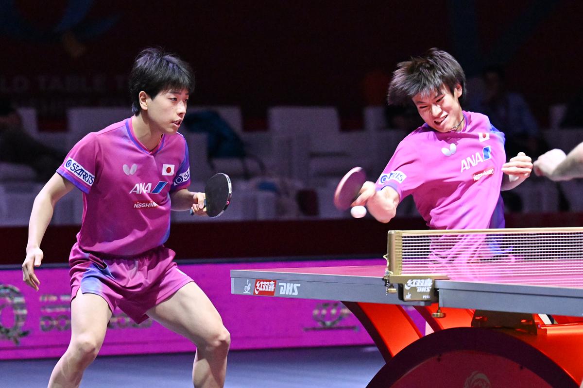 第1ゲームこそ互いが探り合う展開でジュースまで競り合ったが、ここを物にすると、「大会前にストップ対ストップの練習をやり込んだが、それが1番発揮できた」と振り返るように、精度の高いストップで台上を制圧して鋭い両ハンドの連係につなげ、エジプトペアにストレートで勝利。第2シードを守って準決勝に勝ち上がった。