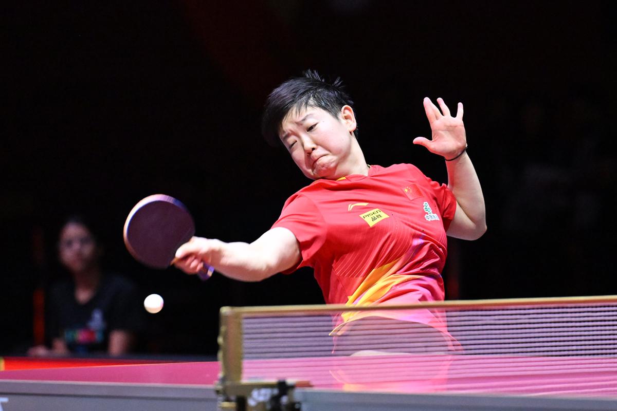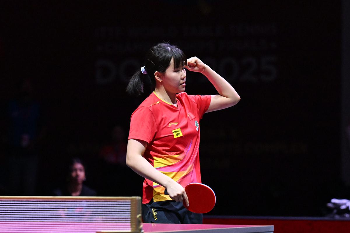 伊藤は、2021年ヒューストン大会の準々決勝で敗れている王芸迪(中国)と対戦。第1ゲームは速攻を王芸迪の力強い両ハンドに跳ね返されて落とすが、第2ゲームから多彩なレシーブとサービスでペースを握り返す。