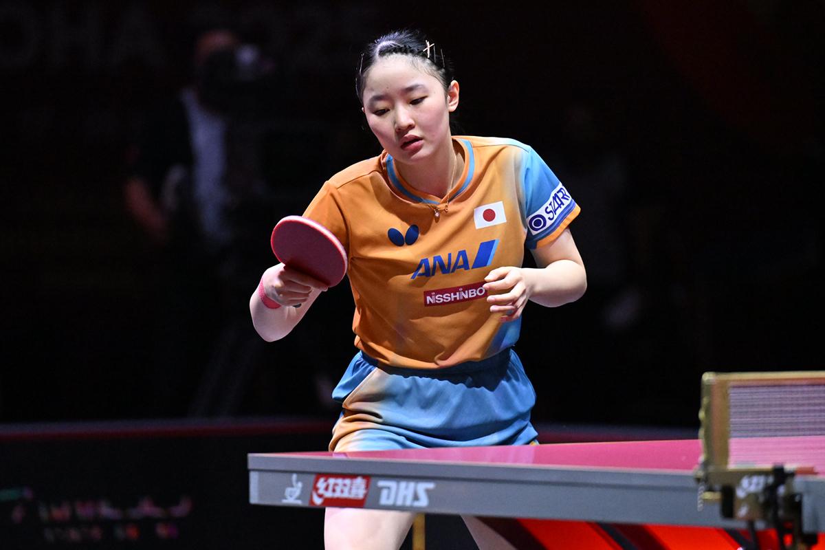日中対決のラストに登場した張本美和も王曼昱(中国)にストレートで敗れ、メダル獲得はならなかった。ワールドカップでは王曼昱を追い詰めた張本だったが、今回は待ちを外されて逆を突かれる場面が多く、王曼昱をワイドに揺さぶってもさらに厳しいコースに跳ね返されて万事休した。