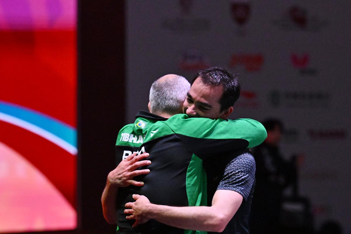 ベスト4最後の椅子は、カルデラーノ(ブラジル)がつかんだ。投げ上げサービスからの強烈な両ハンドで安宰賢(韓国)に終始プレッシャーをかけ、ゲームカウント4対1で勝利。ワールドカップ優勝の実力を発揮して、ブラジルに初の男子シングルスでのメダルをもたらした。