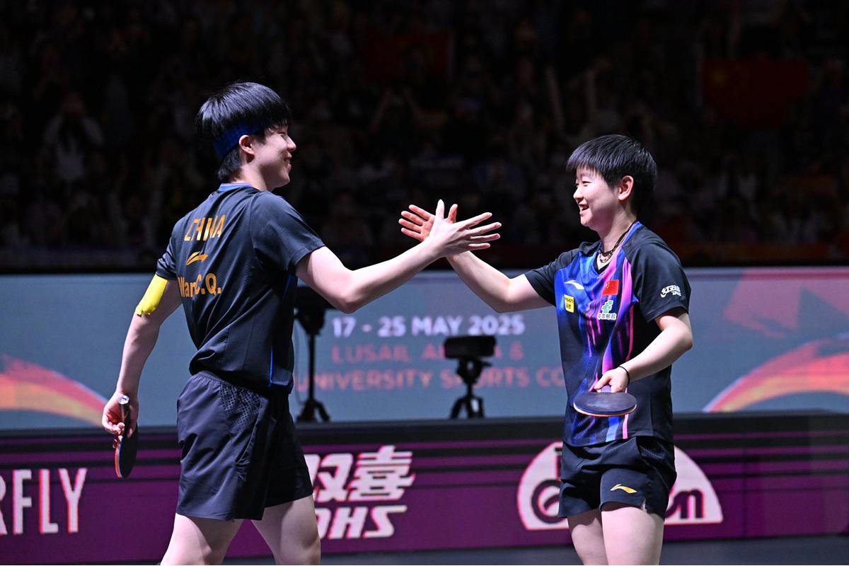王楚欽/孫穎莎がさすがの強さを見せ、2021年ヒューストン、2023年ダーバンに続いて三連覇を達成した。