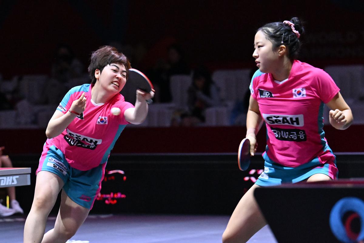 大会8日目の5月24日(土)は女子ダブルス準決勝が行われ、王曼昱/蒯曼(中国)が張本美和/木原美悠を、ポルカノバ/スッチ(オーストリア/ルーマニア)が申裕斌/柳漢娜(韓国)をそれぞれ下し、決勝へ勝ち進んだ。