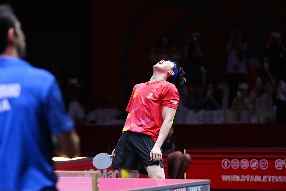 第5ゲームも王楚欽優位は変わらず、カルデラーノのミドルを起点に攻め立てて優位に進め、10-7とチャンピオンシップポイントを握ると、最後もカルデラーノのミドル目がけてチキータを放ち、カルデラーノの体勢を詰まらせて得点。王楚欽がワールドカップでのリベンジを果たして、世界の頂点をつかんだ。