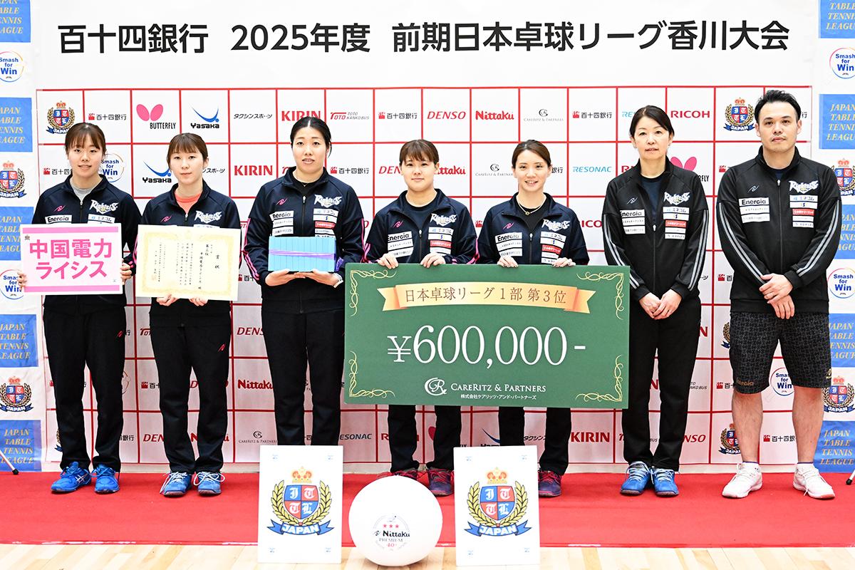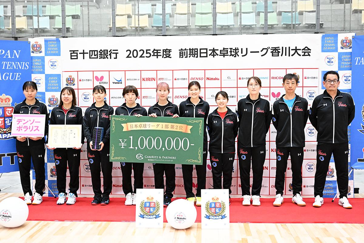 2位はデンソーポラリス。橋本が加わり、戦力アップで今大会に臨んだが、レゾナックの層の厚さに跳ね返され、2023年前期以来の優勝には届かず。そのレゾナック戦ではトップで橋本がカット打ちの名手・芝田につかまり、流れに乗れなかった。