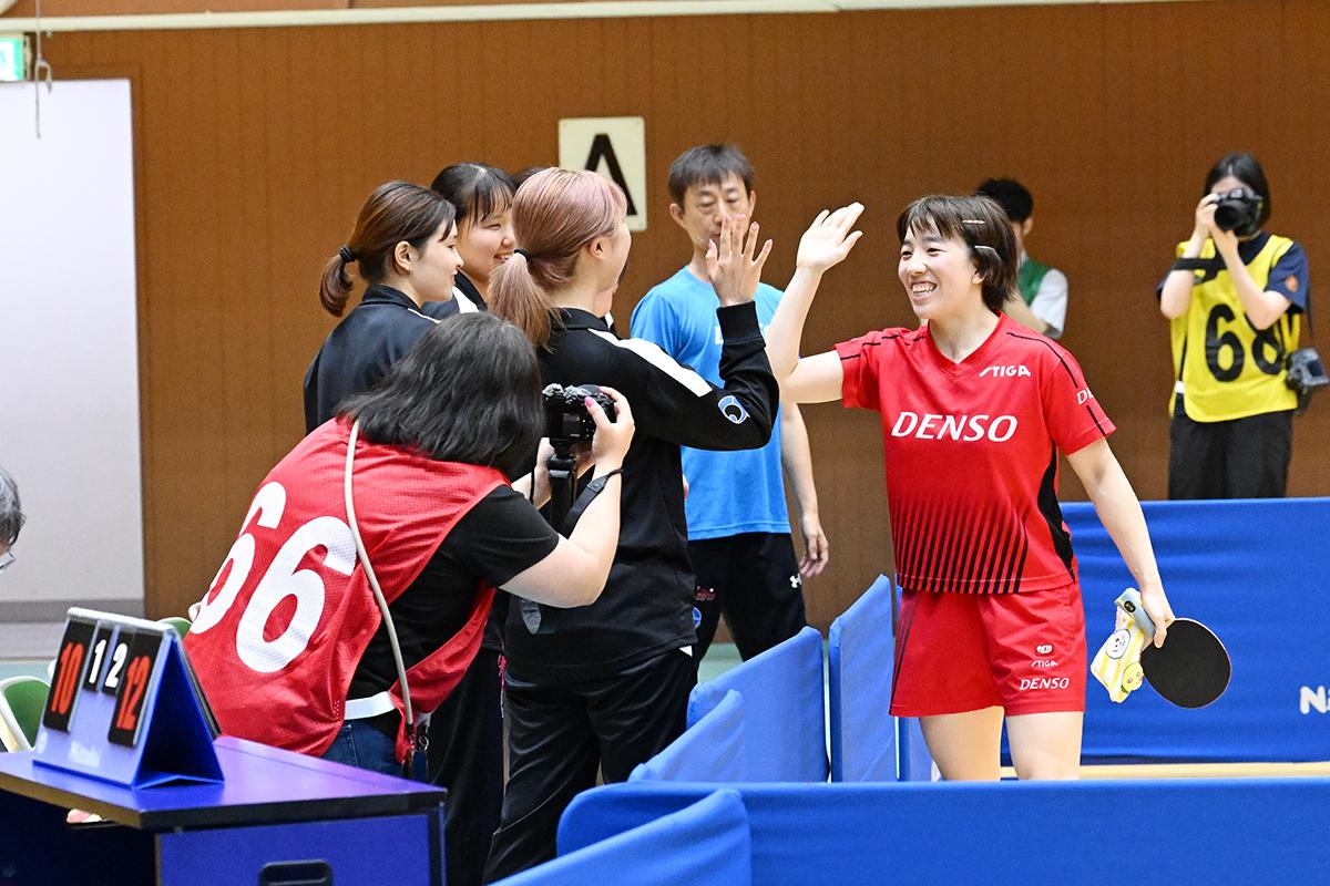 (準決勝の)サンリツ戦、(決勝の)レゾナック戦はどちらもオーダーが良かったですね。取りたい試合を狙い通りにしっかり取ることができたことが良かった。特に、ダブルスの勝利が大きかったですね。出澤/出雲にはビッグトーナメントで負けていましたが、粘り強く戦って、最後は逆転で勝つことができました。ダブルスが勝利できれば優勝できる可能性は高いと思っていたので、ダブルスが勝てたのは本当に大きかったと思います。