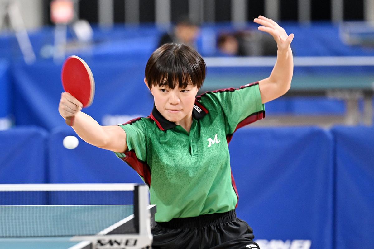 第2シードは面手凛(山陽学園)。全日本ジュニア女子では2年連続で決勝まで勝ち上がるも、インターハイでは優勝候補と目されながら8強止まりが続いている。面手の両ハンドの鋭さは誰もが認めるところ。まずは準々決勝の壁を乗り越えたい。