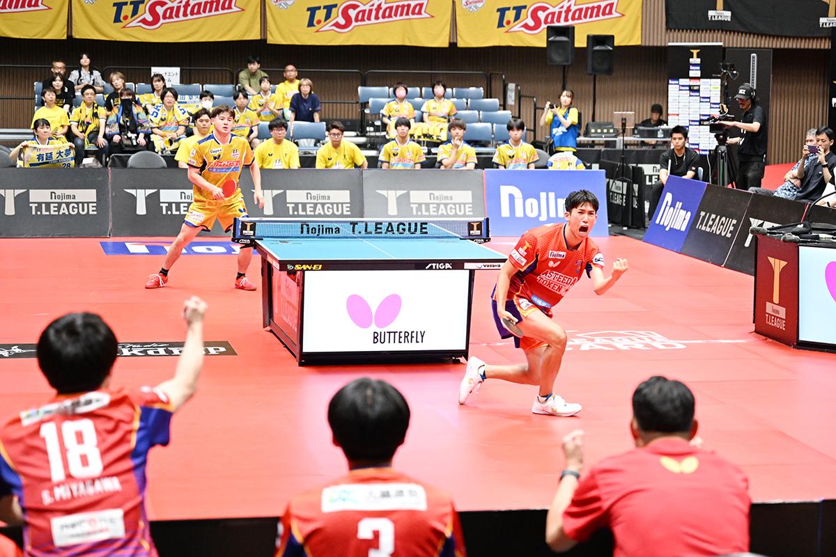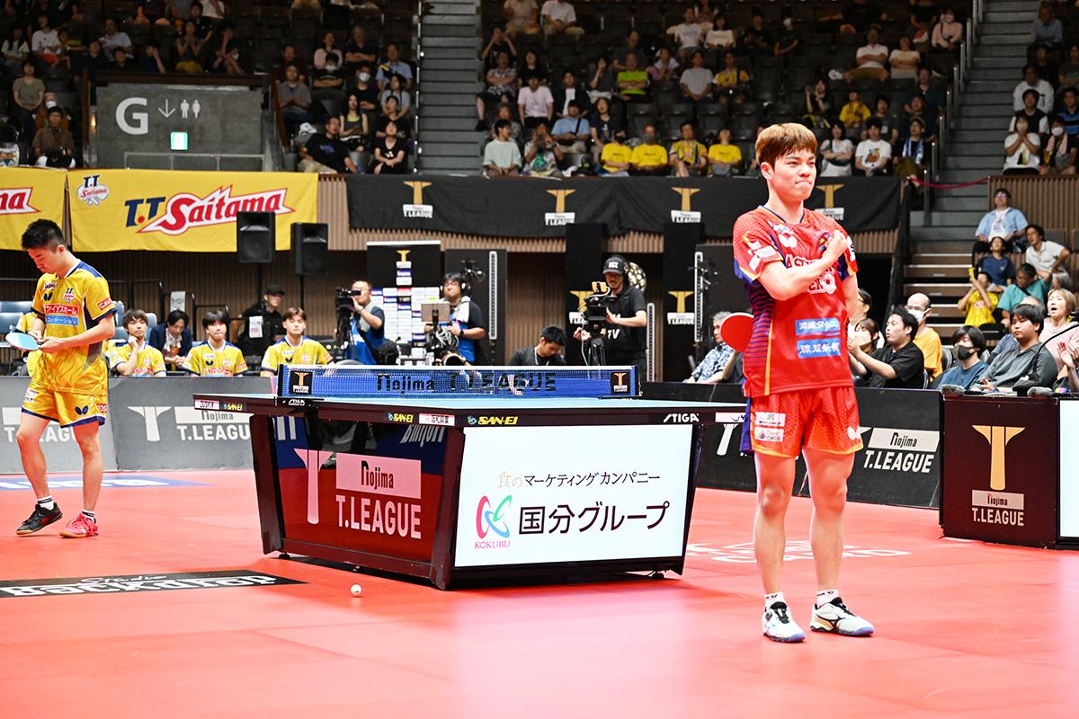 あとがなくなったT.T彩たまはファイター・神巧也で巻き返しを狙う。開幕戦勝利を決めたい琉球アスティーダは、第1マッチのダブルスで先制点を挙げた趙勝敏に決勝点を託した。