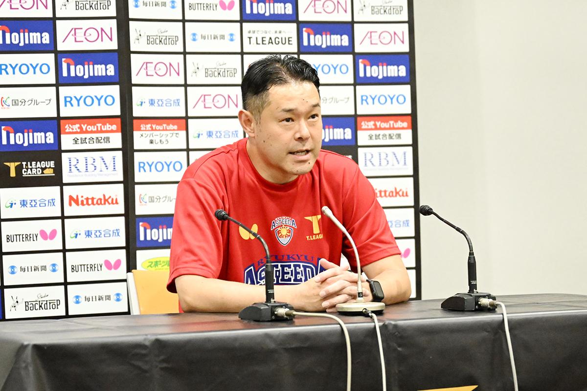 昨年のファイナルで負けて悔しい思いをしていた選手がいて、その中でファイナルで負けたダブルスと真晴(吉村真晴)が今日勝利を収めて、そしてチームが勝ったというのは、リベンジを含めて良いスタートを切ることができたと思っています。ただ、長いシーズンがこれから続くので、その長いシーズンの中での1勝ということを考えたら、まだまだ目標に向けて準備をしなきゃいけないところではありますが、まずは開幕戦で勝利することができて、今はほっとしています。