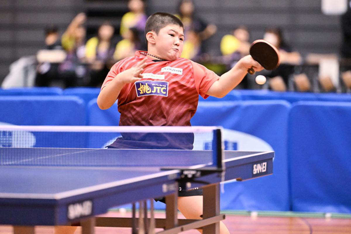 カブ男子は一昨年のバンビチャンピオン、姚梓聡が優勝を決めた。回転量の多い両ハンドで尾形栄虎の両サイドを厳しく攻めた姚がストレートで勝利。危なげない内容で2階級制覇を達成。