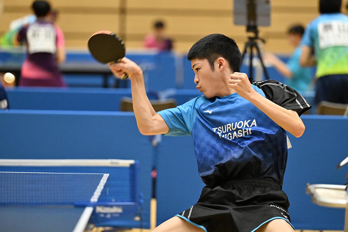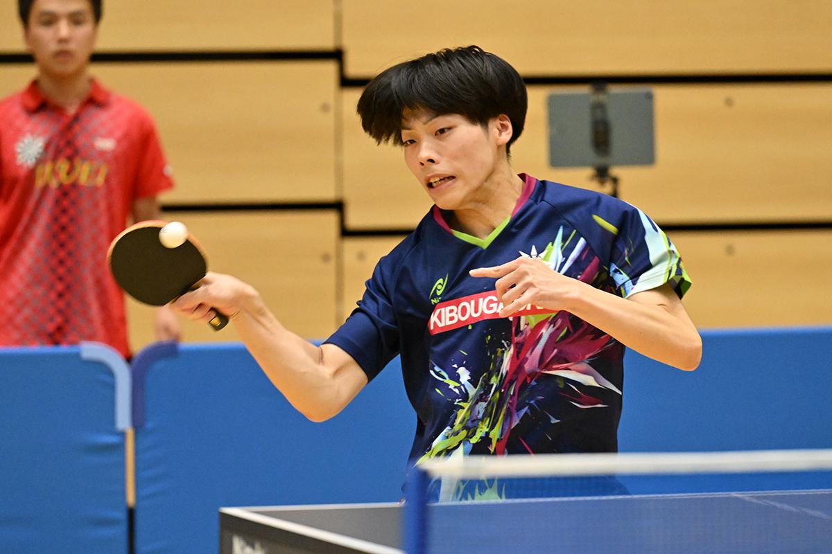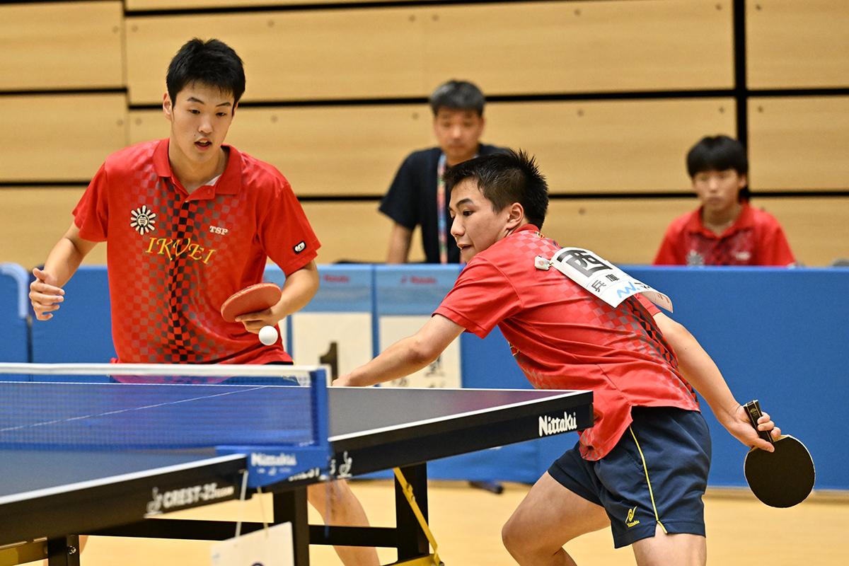 準々決勝第2試合は春の選抜3位の希望が丘(福岡)に近畿大会優勝の育英(兵庫)が挑んだ。1番はラリーに強い大貫が育英のルーキー・松島翔空の前陣ブロックを攻略するが、2番の育英・谷本が希望が丘・森駿の独特のリズムに苦戦しながらも最後はどっしり打ち切って1対1に。