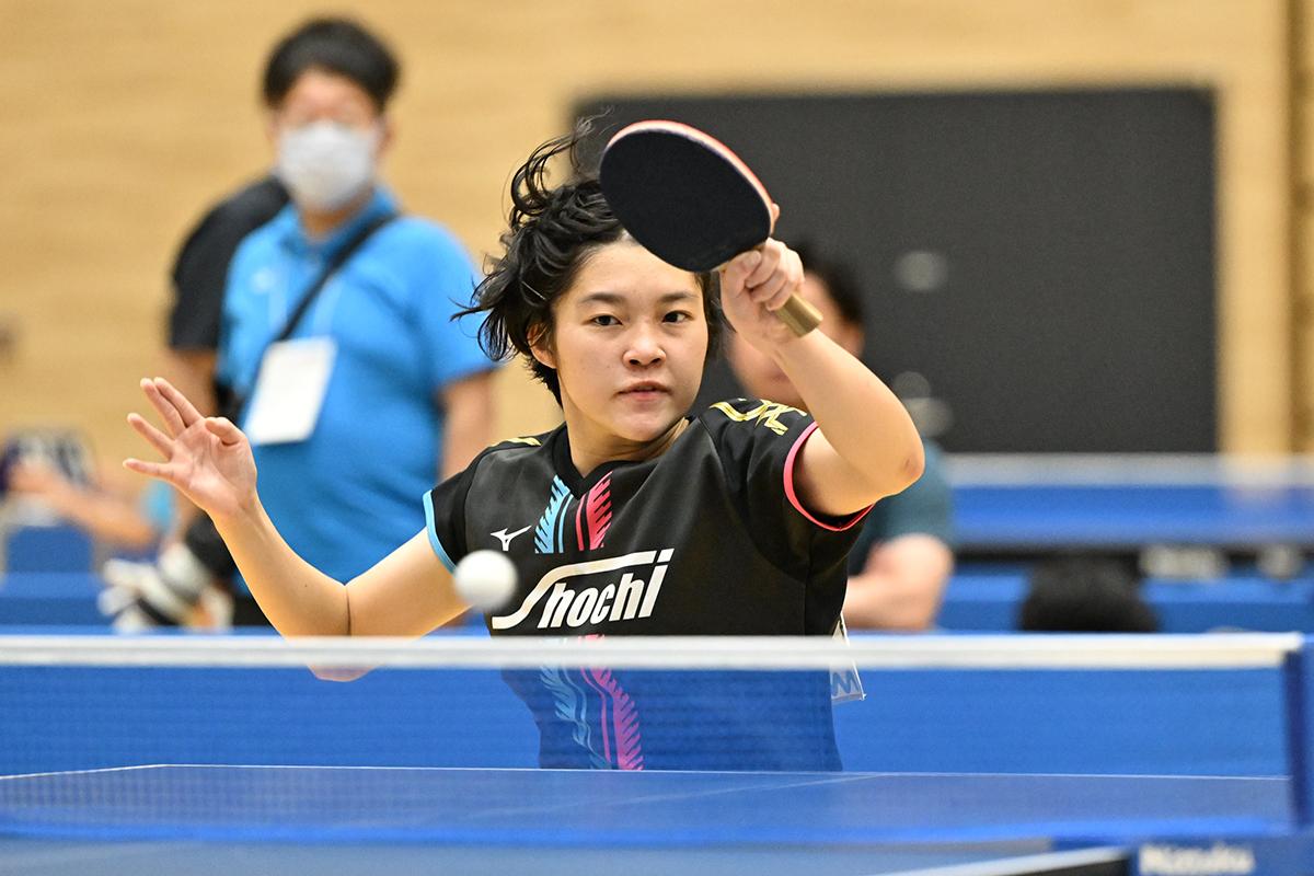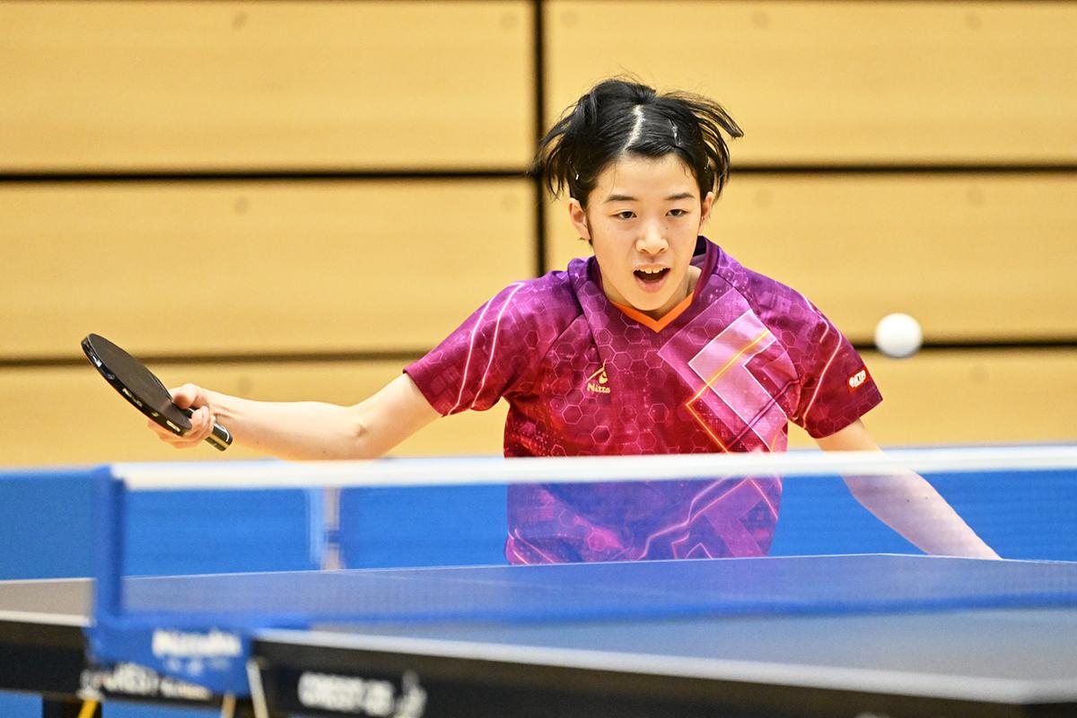 そして、ベスト8に勝ち残った顔ぶれで台風の目になっているのが、ノーシードから勝ち上がってきた1年生の髙橋美羽(駒大苫小牧)。2回戦で、8シードの渡邉心葉(明徳義塾)に競り勝つと、5回戦では佐藤結菜(進徳女子)の猛攻をゲームオールでしのいでベスト8入りを果たした。守備範囲の広いカットでどこまで勝ち上がるのか注目だ。