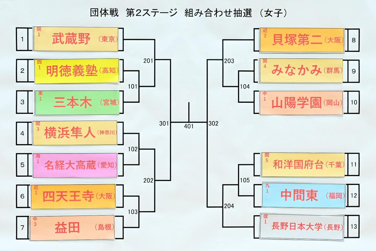 貝塚第二は右上のブロックのシードに入った。第1ステージで2つの3対2の接戦を勝ち抜いてきたみなかみ(群馬)と選抜3位の山陽学園(岡山)の勝者と準々決勝を争うブロックだ。