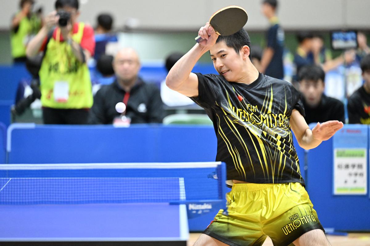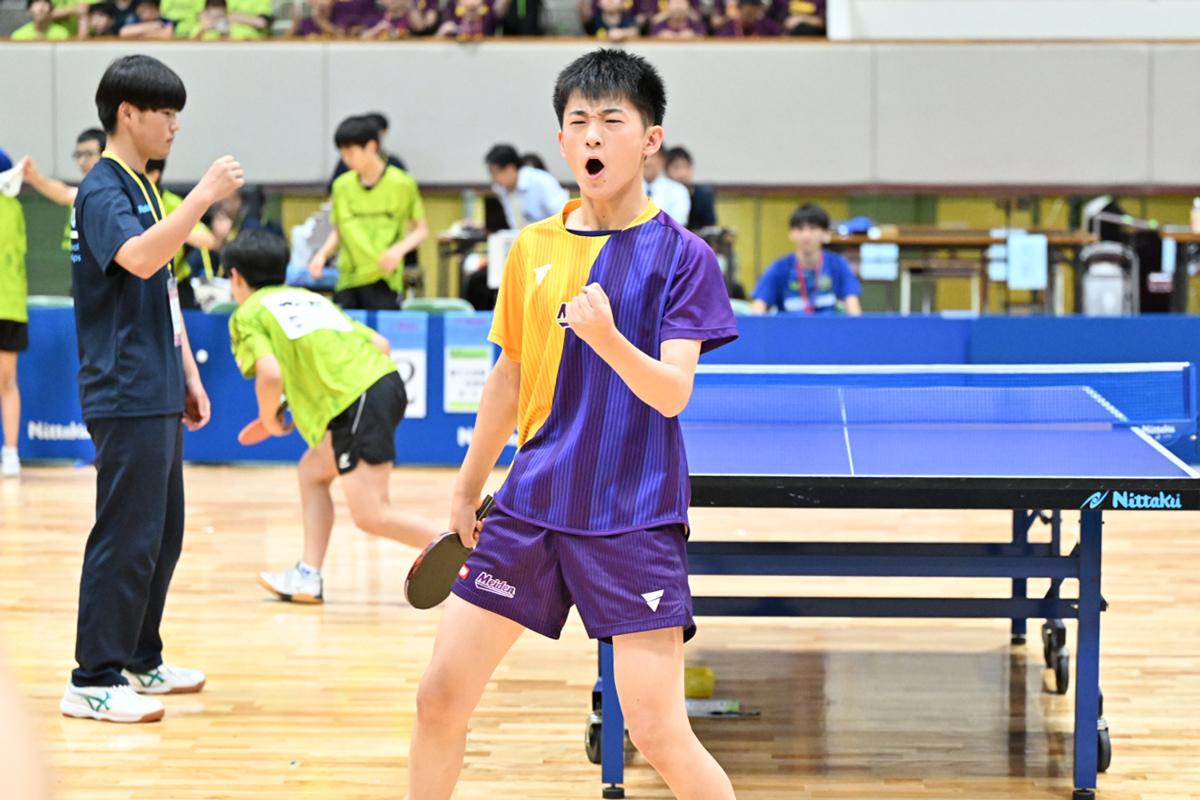 1回戦で浜松修学舎(静岡)をストレートで退けた上宮(大阪)は、準々決勝で松徳学院(島根)と対戦。上宮は前半で2対0とし、王手をかけるも、松徳学院がダブルスと4番を取り返してラストへ。ラストは上宮の北端が安定した前陣攻守でストレート勝ち。接戦を制した上宮がベスト4入りを決めた。