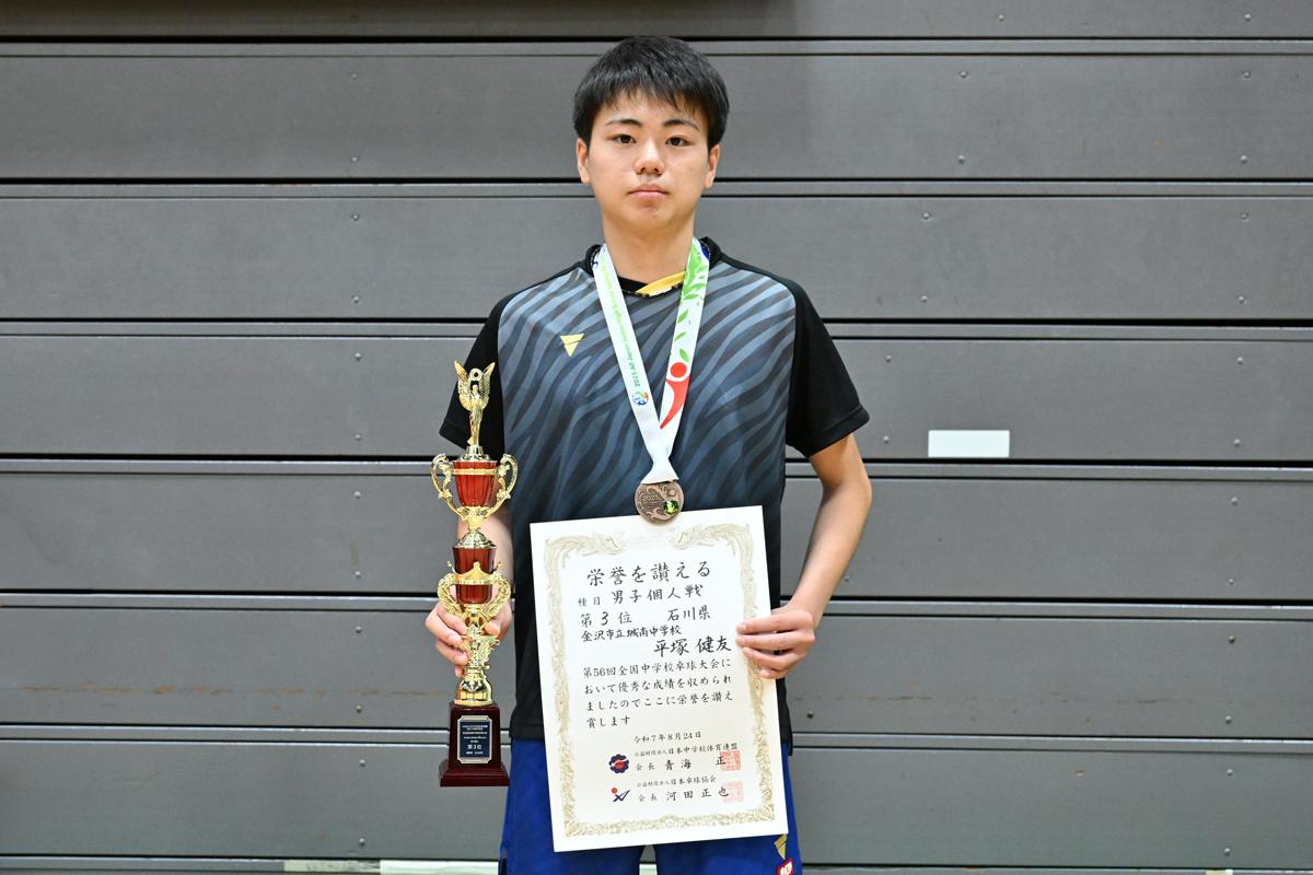 カデット14歳以下王者の平塚健友が最後の夏で優勝を目指したが、決勝進出はならなかった。カット主戦型として恵まれた体格に攻撃力も向上し、今後がますます楽しみな選手だ。