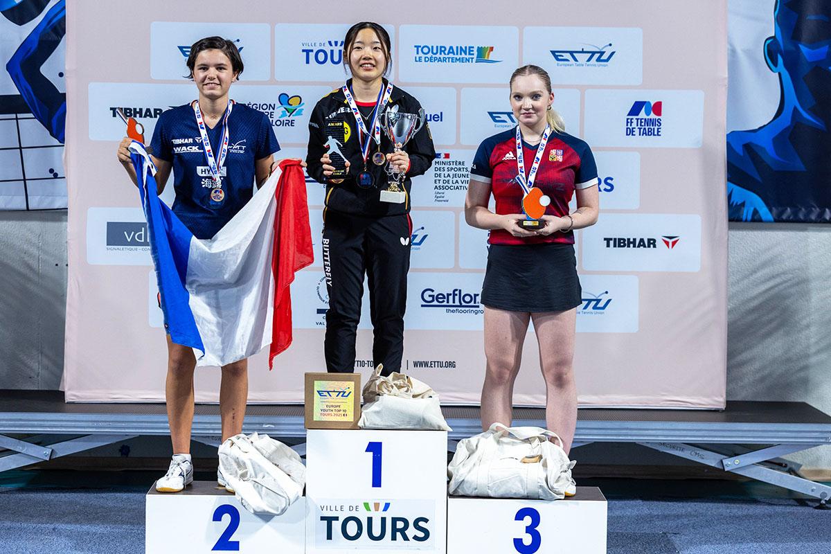 ヨーロッパユース トップ10が2025年10月3〜5日にトゥール(フランス)で開催された。U19女子シングルスはGUO ZHENG(フランス)が優勝。GUO ZHENGはポラコバ(チェコ)に1敗したものの、8勝1敗で優勝した。U15女子シングルスは板垣心春(ドイツ)が全勝優勝。板垣心春は7月のヨーロッパユース選手権大会に続く優勝となった。