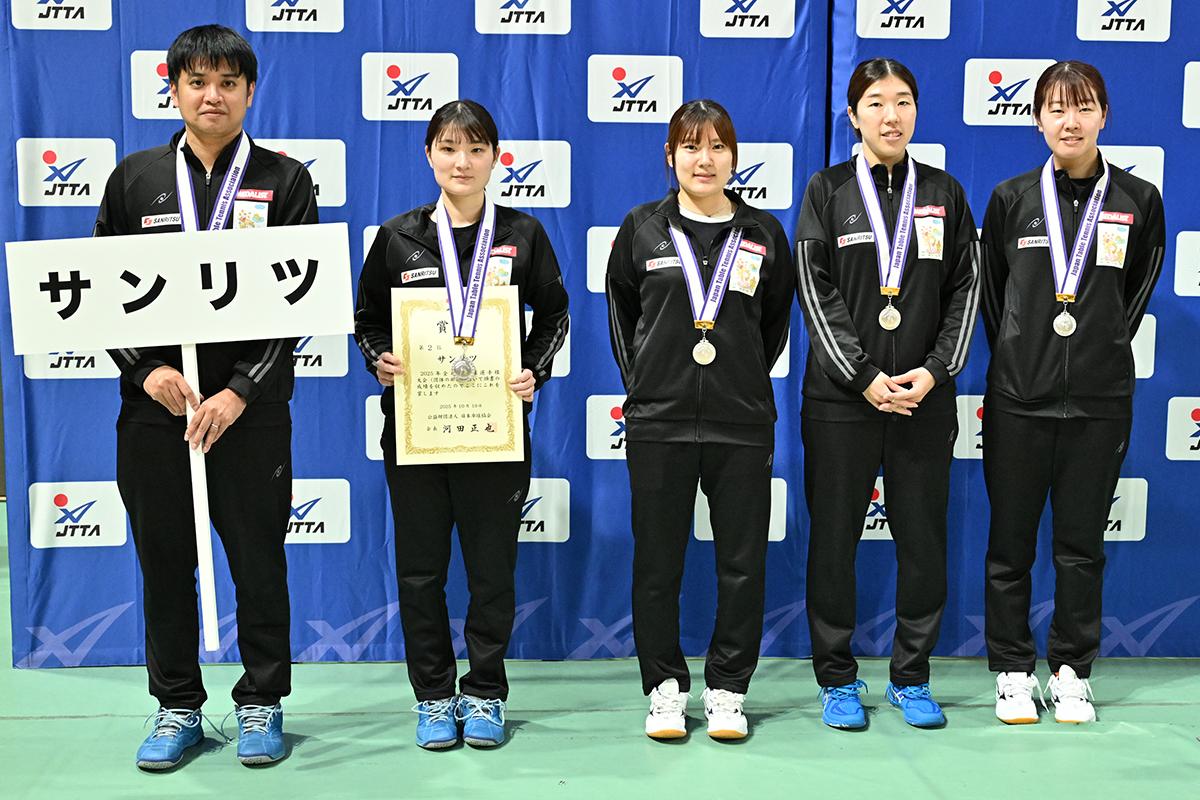 2位のサンリツは、準決勝で優勝候補最有力の中国電力ライシスを下して決勝進出。決勝のデンソーポラリス戦でも2対1とリードし、大いにチャンスがあったが、4番で永尾が野村とのエース対決に競り負け、優勝まで届かなかった。