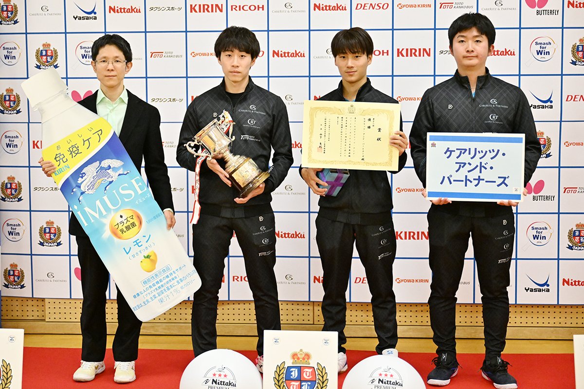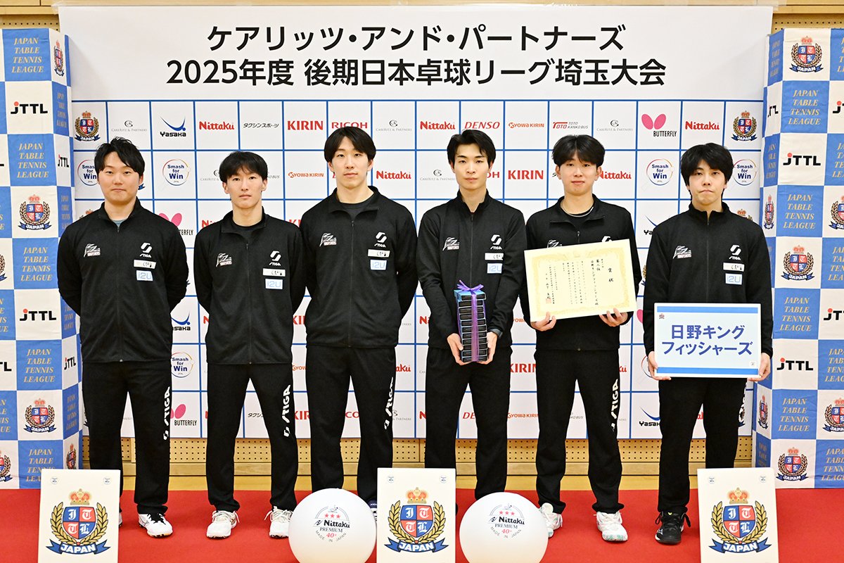 2位の日野キングフィッシャーズは、ケアリッツ・アンド・パートナーズとの最終戦に勝てば文句なしの全勝優勝という状況で、前半1対1で迎えた要のダブルスを取って2対1と王手をかけたが、4番、5番を続けて落として優勝に届かず。
