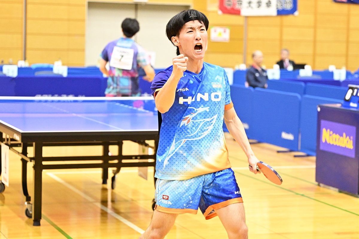 日野キングフィッシャーズとの最終戦は5番までもつれる接戦になったが、ラストの新名が持ち前の前陣での鋭い両ハンドで川上を退け、チームの勝利を決めた。