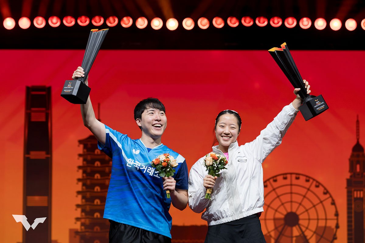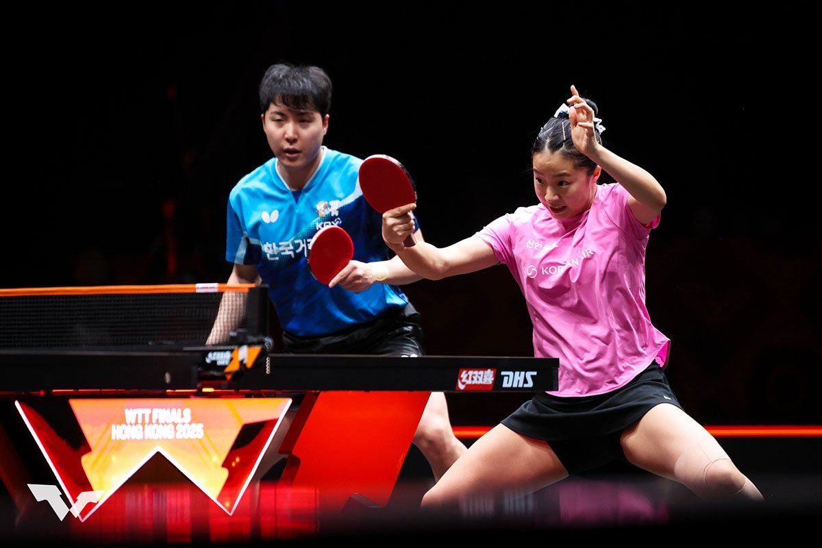 WTTファイナルズ 香港が2025年12月10〜14日に香港で開催された。混合ダブルスは林鐘勳/申裕斌(韓国)が優勝。準決勝では林詩棟/蒯曼(中国)に勝利してヨーロッパ スマッシュの雪辱を果たし、決勝では王楚欽/孫穎莎(中国)にストレートで勝利した。松島輝空/張本美和(日本)は3位に入った。