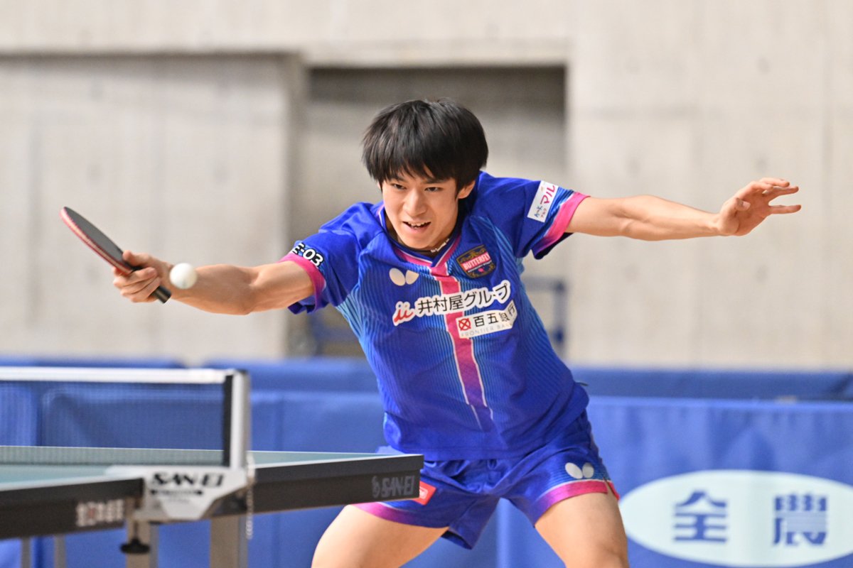ディフェンディングチャンピオンの松島輝空(木下グループ)は、圧巻の両ハンドでインターハイ三冠王の鈴木颯(愛知工業大)を完封。