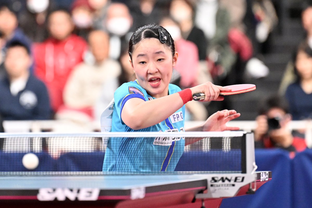 早田ひな(日本生命) 4(4,-5,5,-9,8,8)2 木原美悠(トップおとめピンポンズ名古屋)