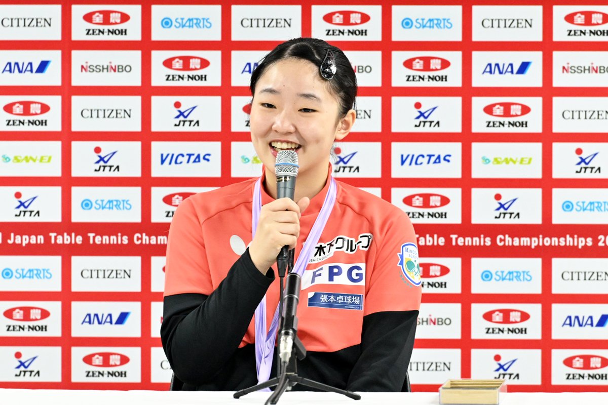 張本 今でも全日本で優勝したいという気持ちは、WTTツアーのどの大会で優勝するよりもしたかった目標なので、本当に本当に嬉しい気持ち。今までオリンピックで銀メダルを取ったときも団体戦だったので私一人だけの力ではないというところもあって、今大会は特別なのでまた違った嬉しさがあったので本当に嬉しい。嬉しくてふわふわしているという感じです。