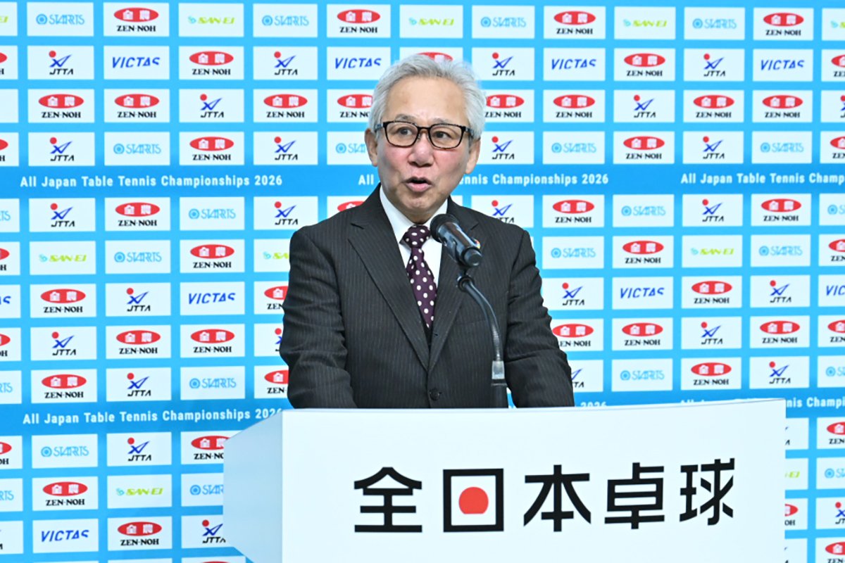 国家斉唱に続き、大会会長を務める河田正也日本卓球協会会長が「心技体知をベースに、各々のペアの強みを生かしたコンビネーションをいかんなく発揮してほしい」と挨拶。