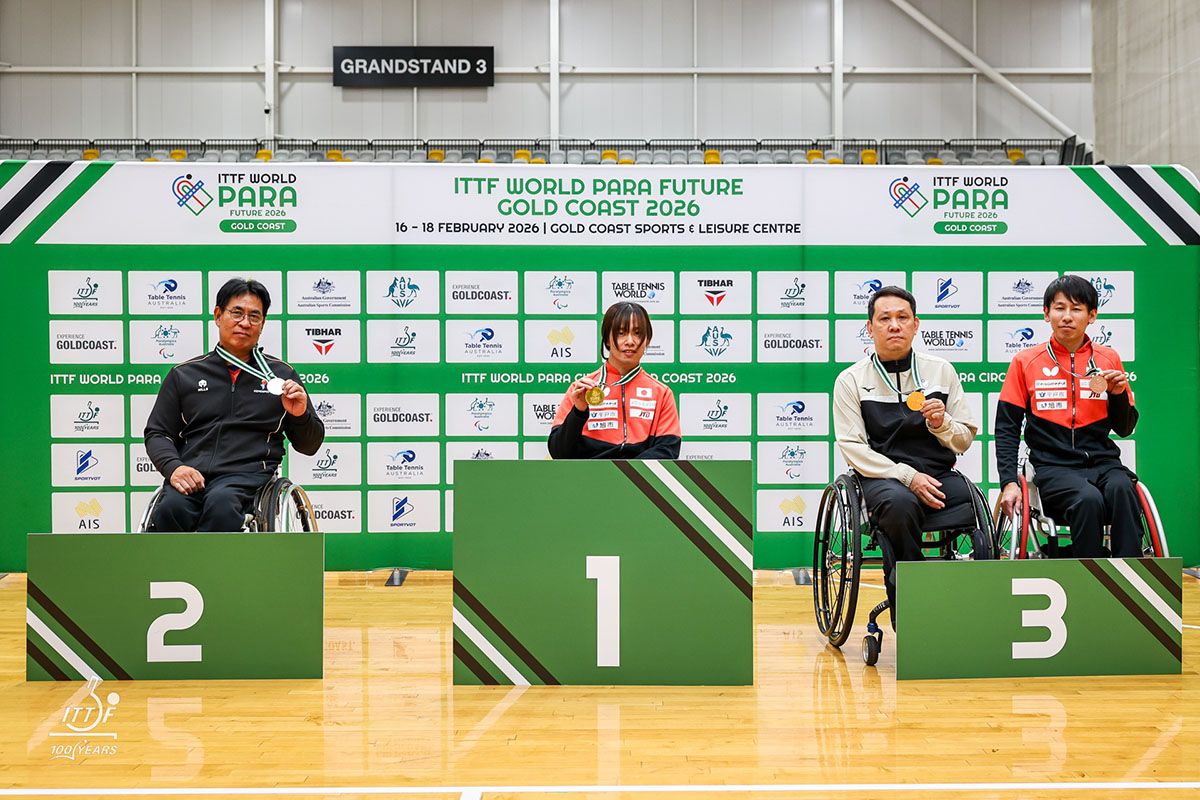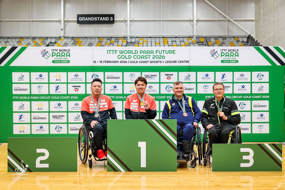 パラ卓球のワールドパラフューチャー ゴールドコーストが2026年2月16〜18日にゴールドコースト(オーストラリア)で開催された。男子シングルスは4種目で日本選手が優勝。クラス1-2で宇野正則が優勝、クラス4-5で齊藤元希が優勝、クラス8で阿部隼万が優勝、クラス9で岩渕幸洋が優勝を果たした。また、クラス1-2で松尾充浩が2位、クラス3で渡邊剛が2位、クラス10