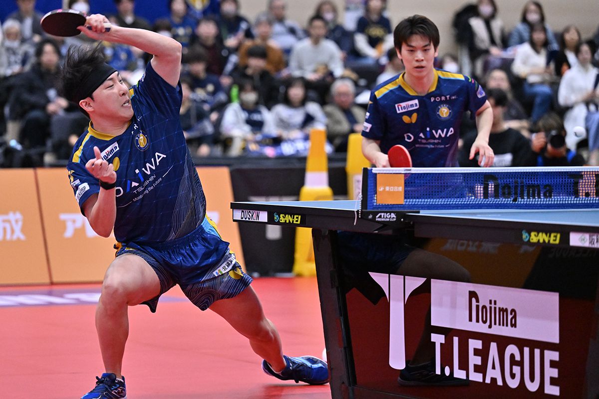 Tリーグならではの試合方式で1番はダブルスからスタート。