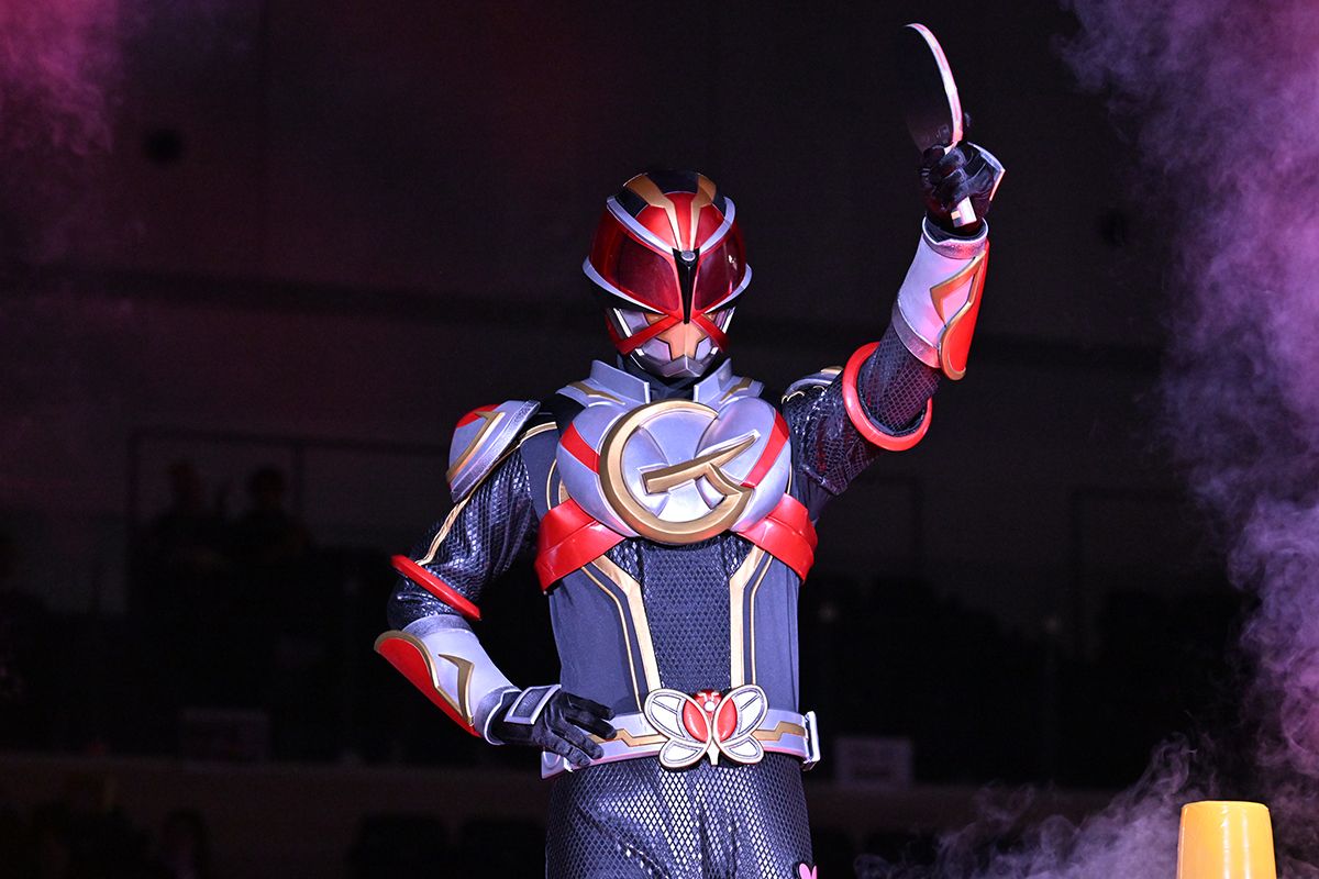 Tリーグプレーオフの恒例となったチャレンジコーナのゲストに卓球ヒーロー・グレイザーマンが登場。こちらもおなじみのグータッチでチャレンジャーを励ました。